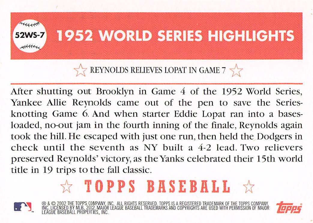 2002 Topps 1952 World Series Highlights Allie Reynolds - Ed Lopat #52WS-7