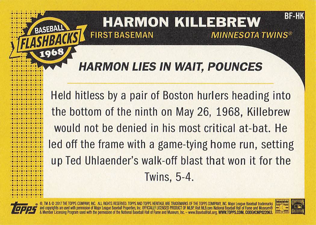 2017 Topps Heritage Baseball Flashbacks Harmon Killebrew #BF-HK