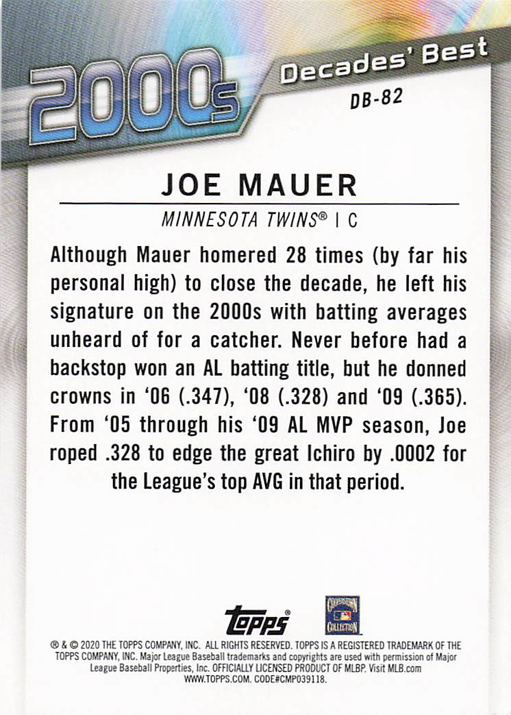 2020 Topps Decades Best Series 2 Joe Mauer #DB-82