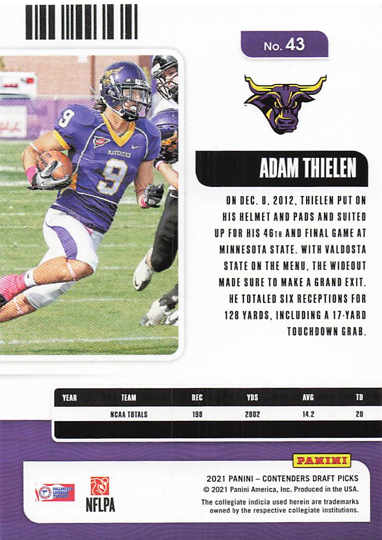 2021 Panini Contenders Draft Picks Adam Thielen #43