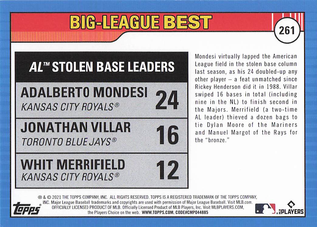 2021 Topps Big League Jonathan Villar / Whit Merrifield / Adalberto Mondesi #261