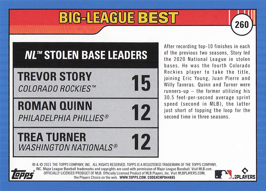 2021 Topps Big League Roman Quinn / Trea Turner / Trevor Story #260