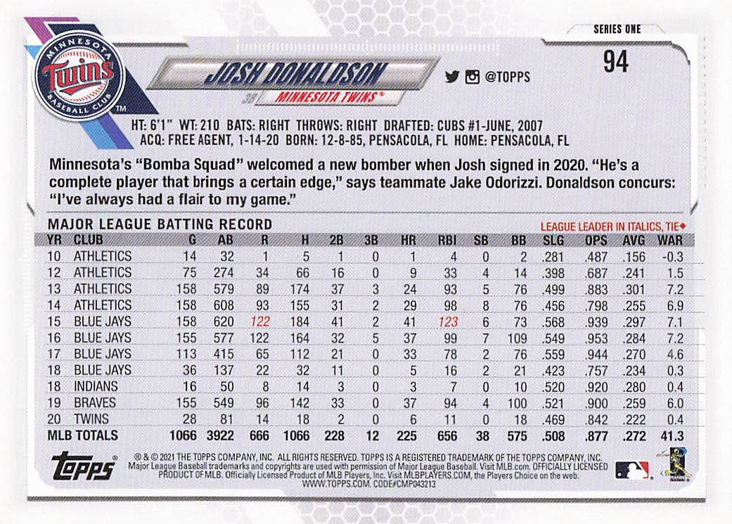 2021 Topps Series 1 Josh Donaldson #94