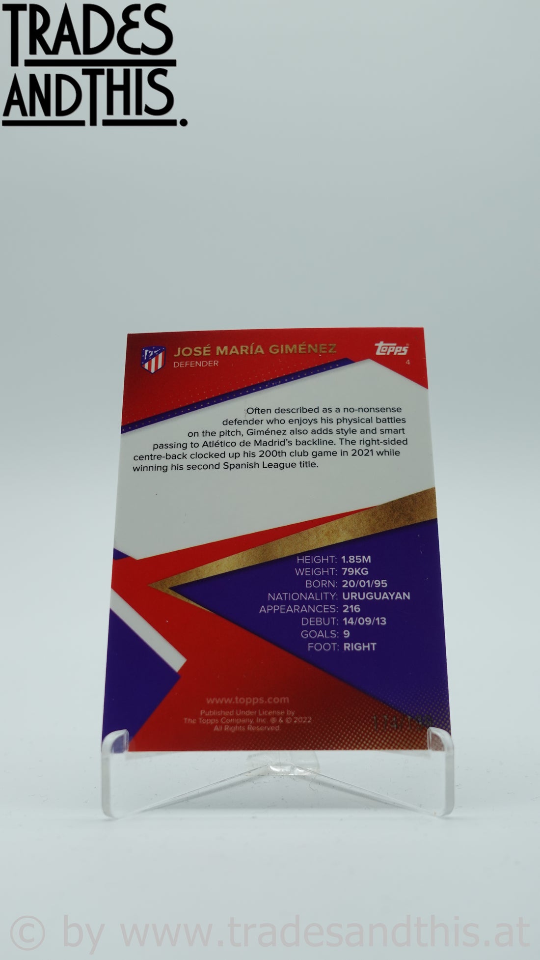 2021-22 Topps Atletico Madrid Team Set Rainbow 174/199 Jose Maria Gimenez #4