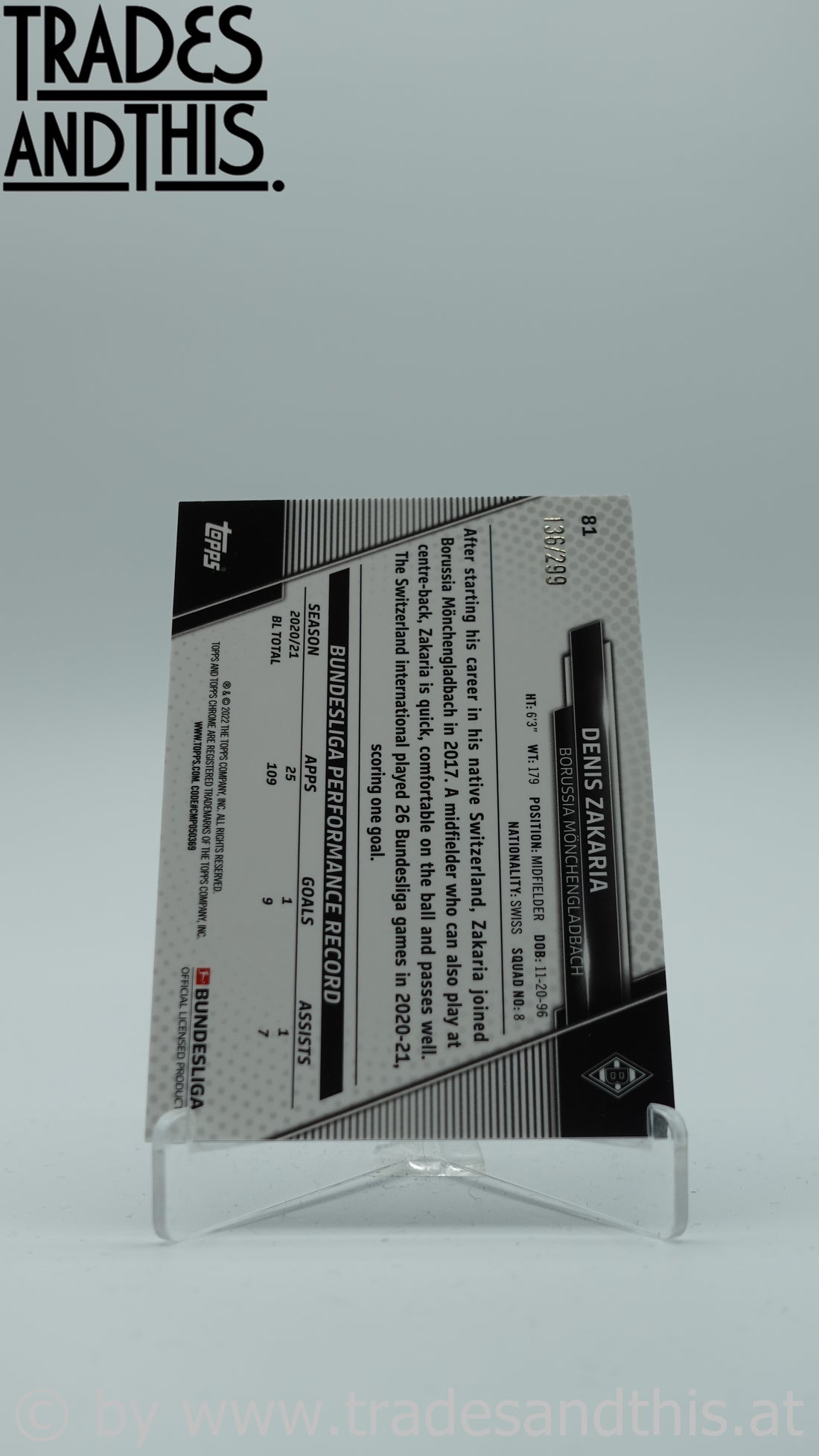 2021-22 Topps Chrome Bundesliga Purple Refractor 136/299 Denis Zakaria #81