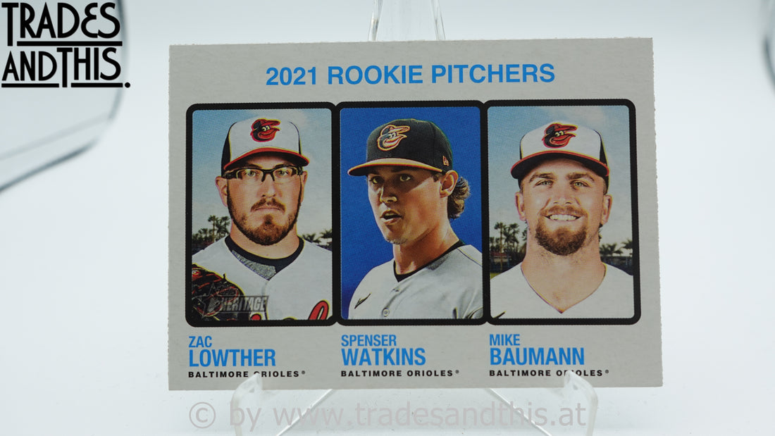 2022 Topps Heritage Mike Baumann RC / Zac Lowther RC / Spenser Watkins #72 RC