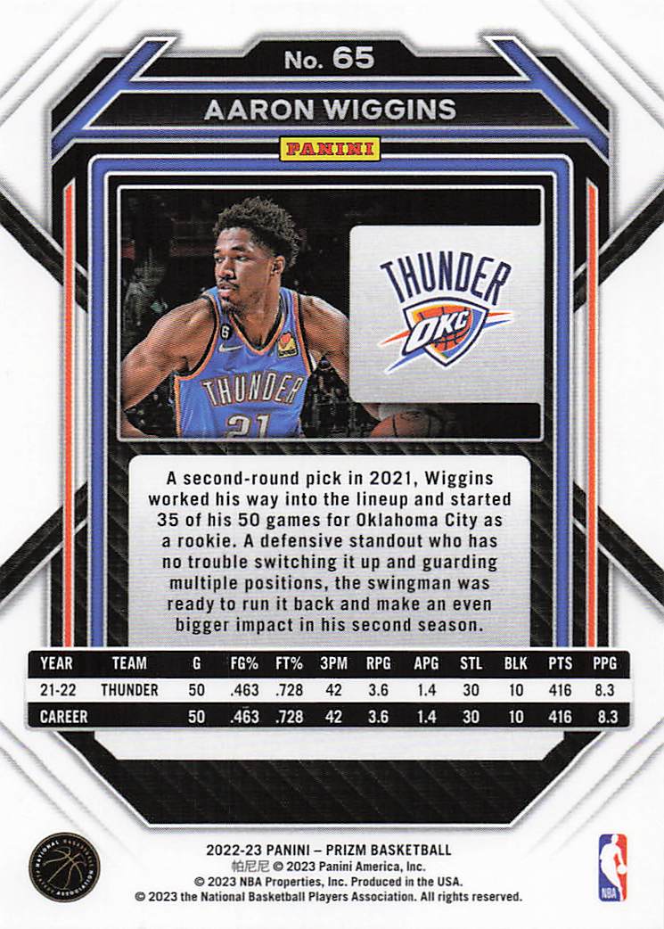 2022-23 Panini Prizm Basketball Aaron Wiggins #65