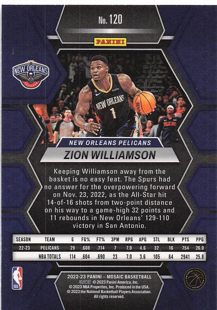 2022-23 Panini Player of the Day Basketball Zion Williamson #50