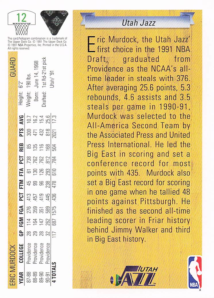 1991-92 Upper Deck Eric Murdock #12 RC