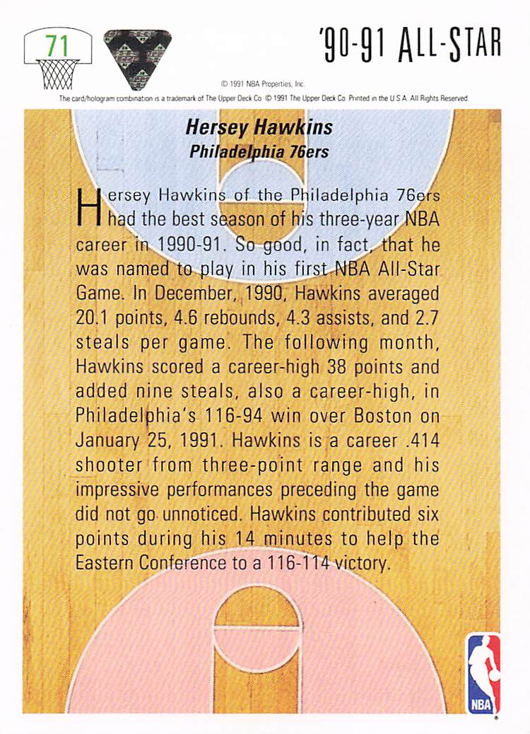 1991-92 Upper Deck Hersey Hawkins #71