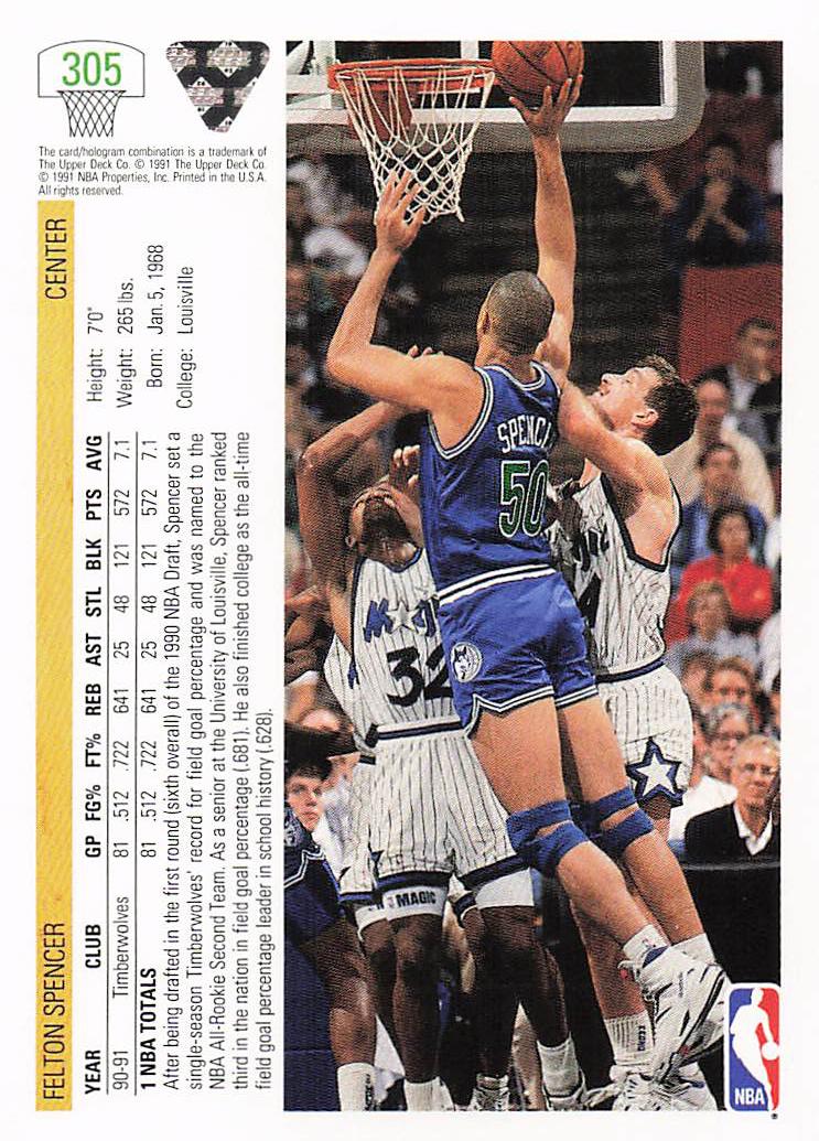 1991-92 Upper Deck Felton Spencer #305