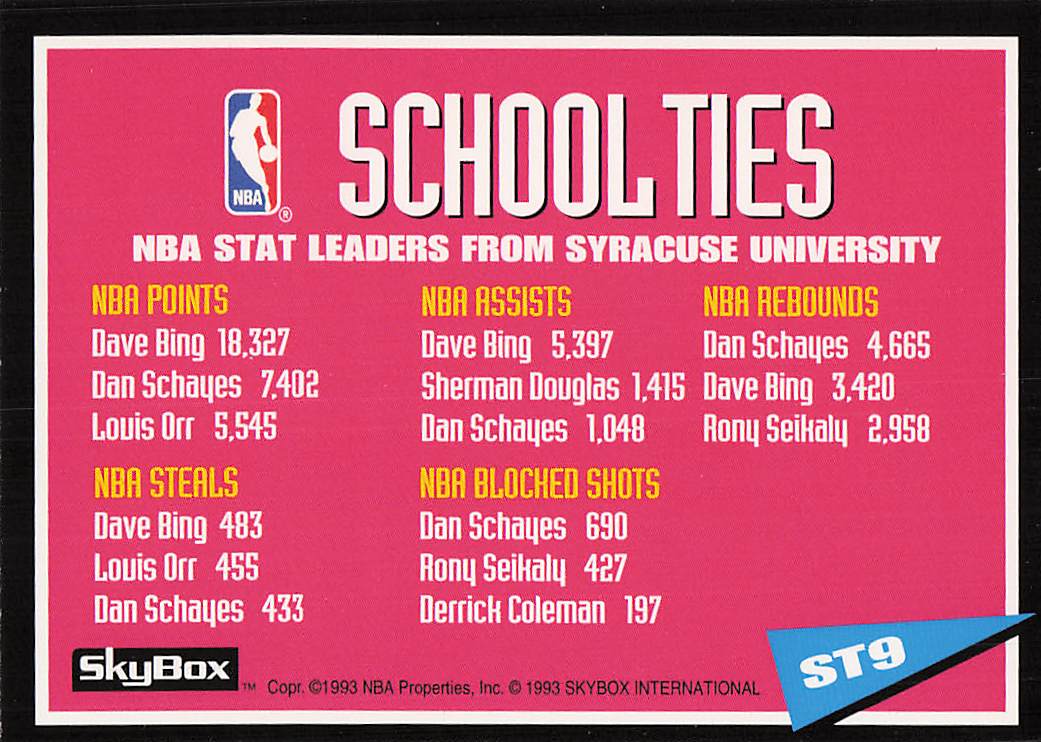 1992-93 Skybox School Ties Sherman Douglas - Dan Schayes #ST9