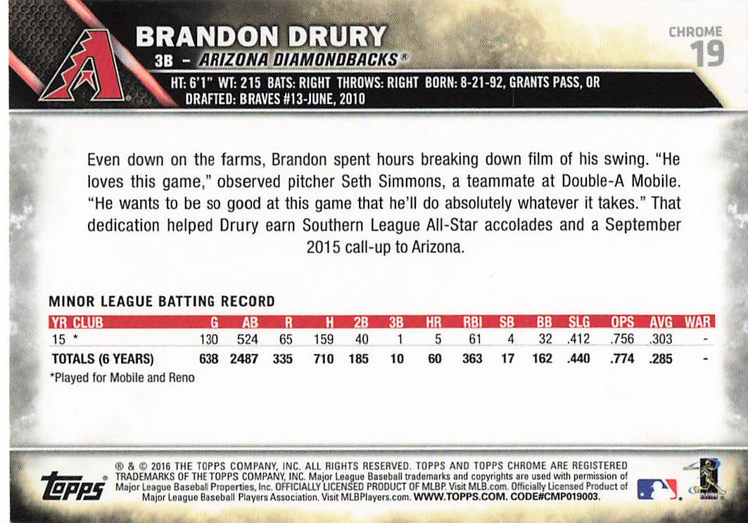 2016 Topps Chrome Brandon Drury #19 RC