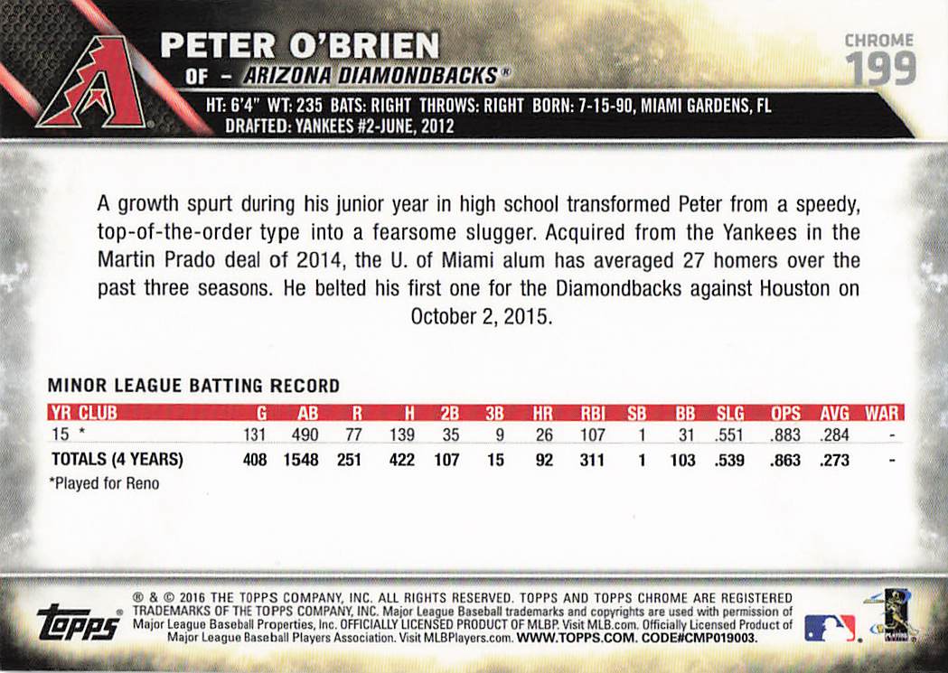 2016 Topps Chrome Peter O'Brien #199