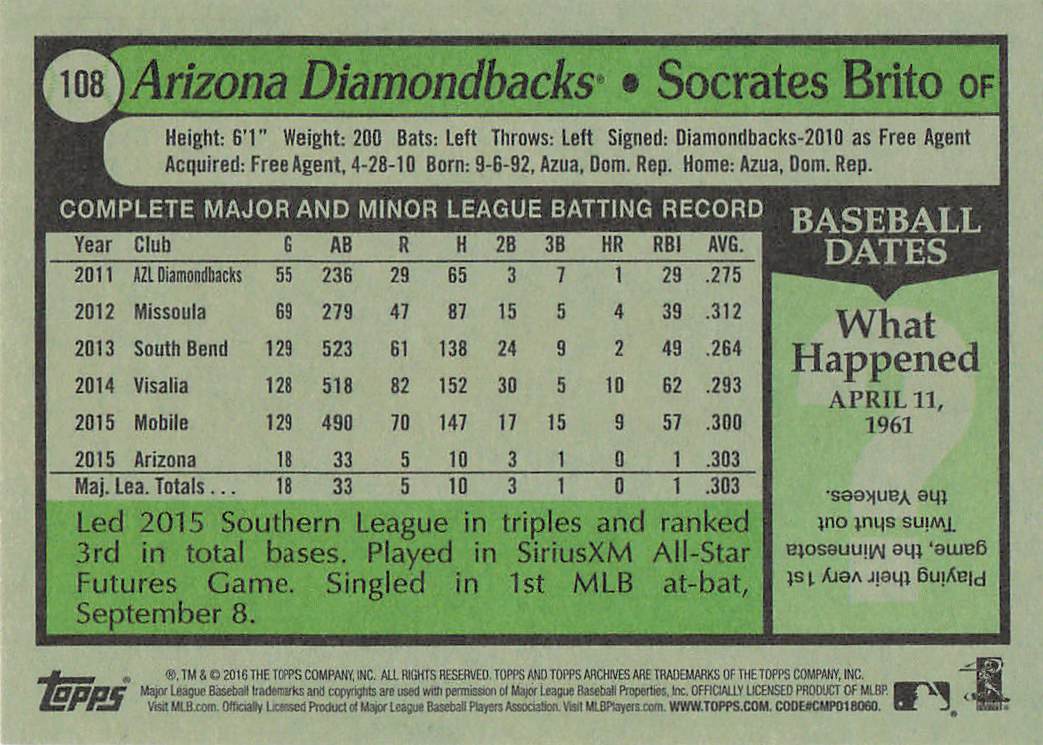 2016 Topps Archives Socrates Brito #108 RC
