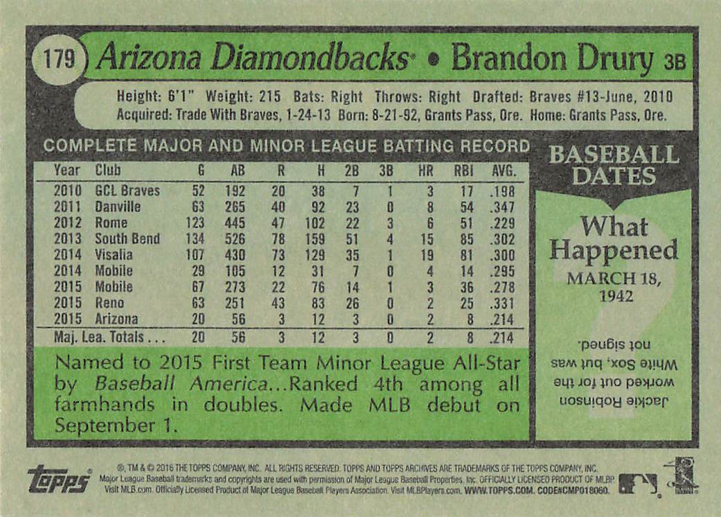 2016 Topps Archives Brandon Drury #179 RC