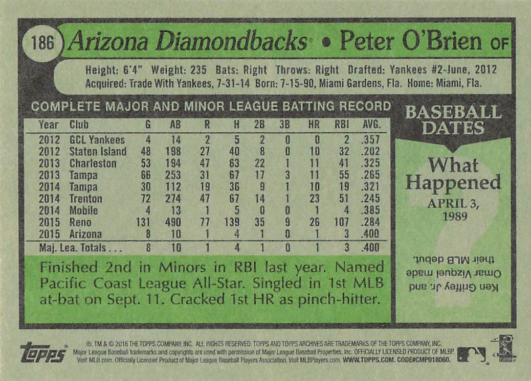 2016 Topps Archives Peter O'Brien #186 RC