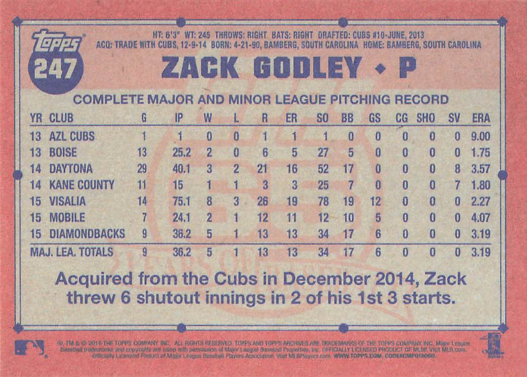 2016 Topps Archives Zack Godley #247 RC