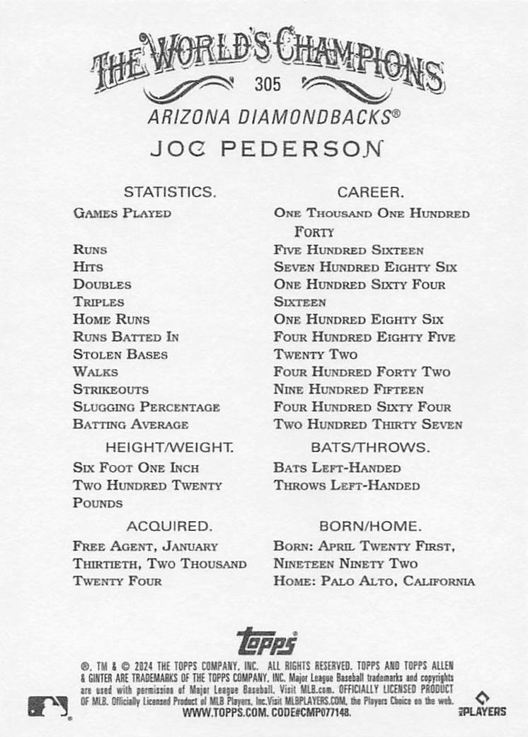 2024 Topps Allen & Ginter Joc Pederson #305 SP