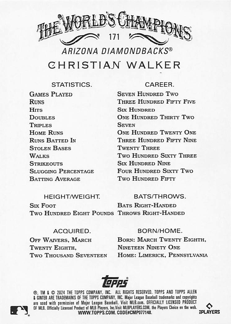 2024 Topps Allen & Ginter Silver Portrait Christian Walker #171