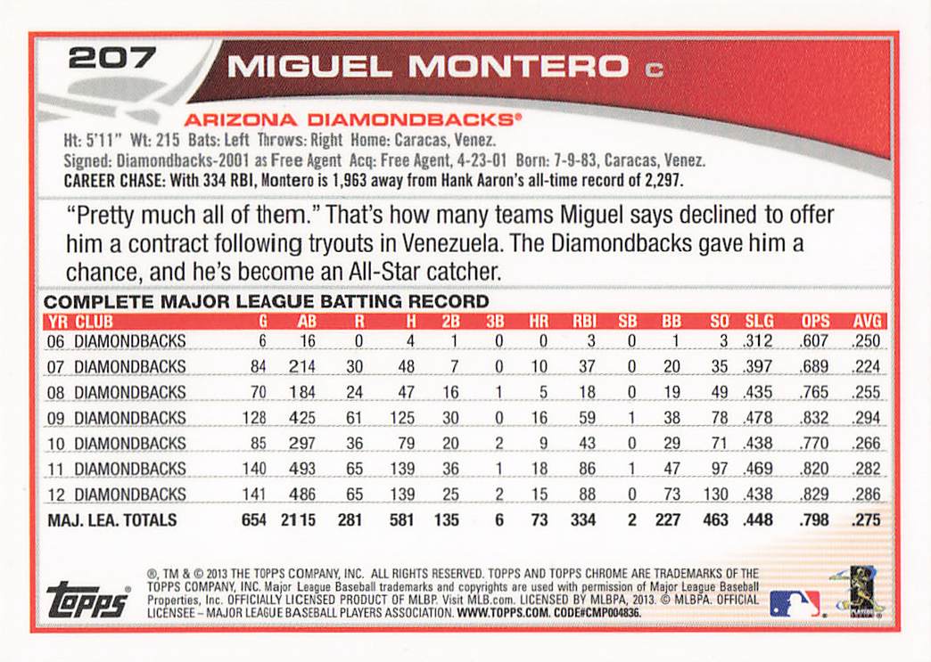 2013 Topps Chrome Baseball Miguel Montero #207