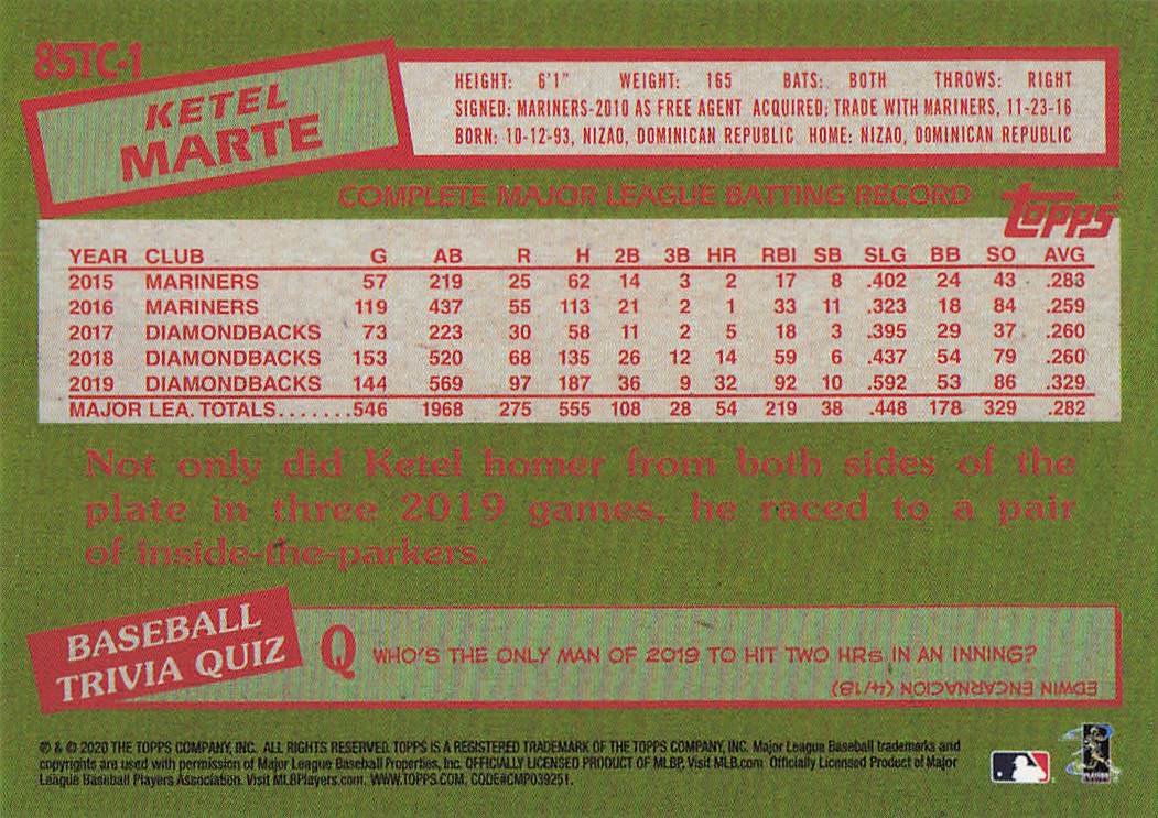 2020 Topps Silver Pack 1985 Topps Chrome Baseball Series 2 Ketel Marte #85TC-1