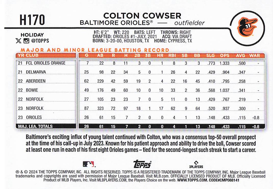 2022 Bowman Chrome Shades of Greatness Colton Cowser #SG-9