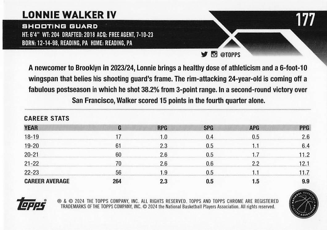 2023-24 Topps Chrome Basketball Lonnie Walker IV #177