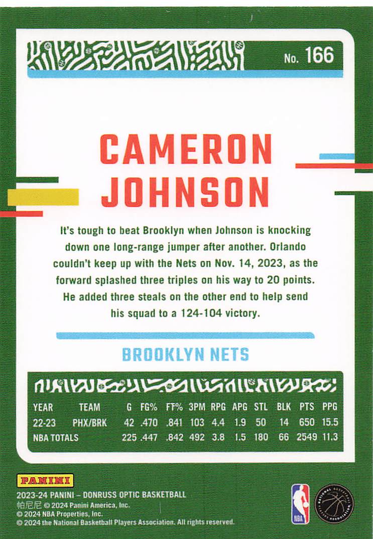 2023-24 Donruss Optic Basketball Cameron Johnson #166