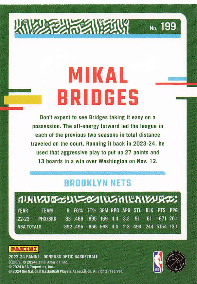 2023-24 Donruss Optic Basketball Mikal Bridges #199