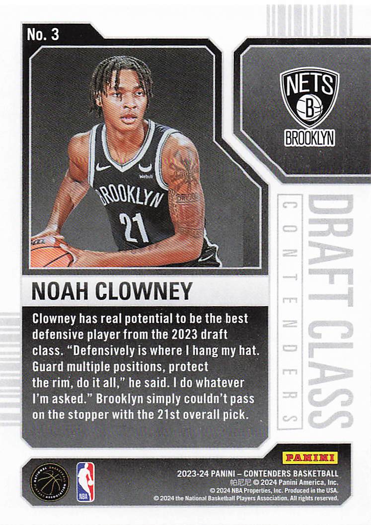 2023-24 Panini Contenders Basketball Draft Class Contenders Noah Clowney #3 RC