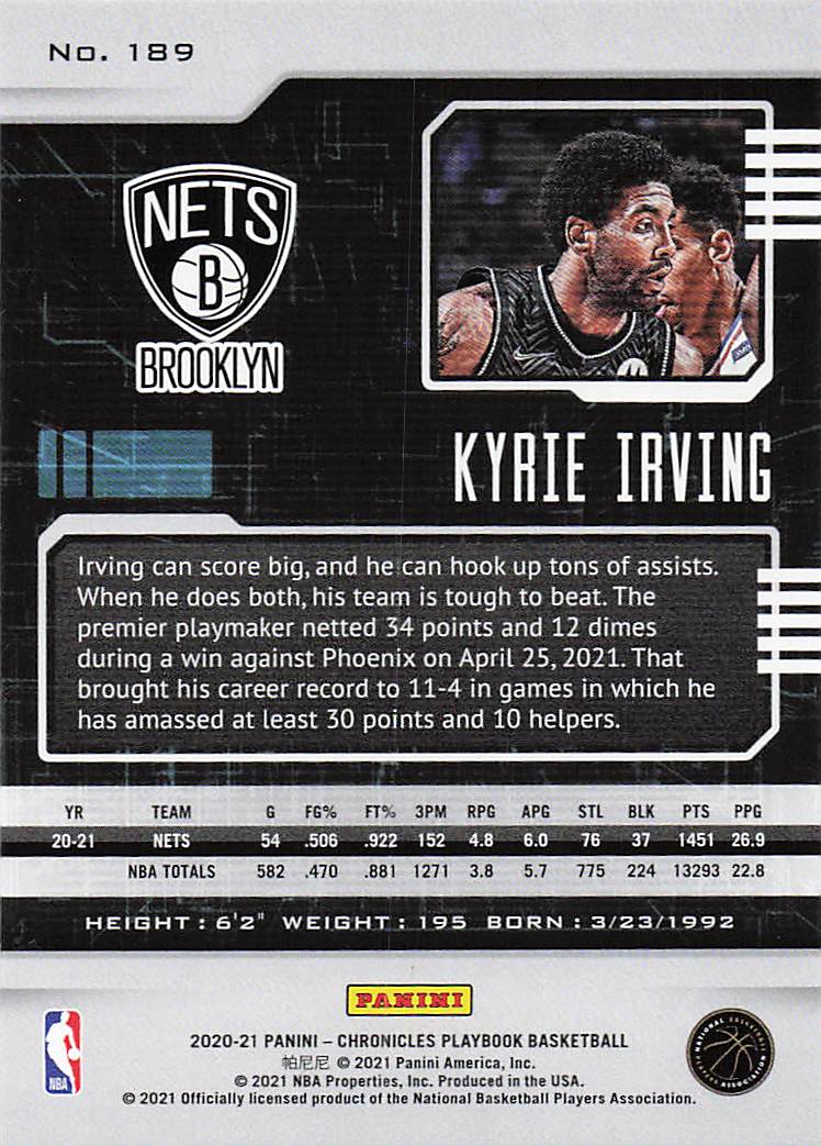 2020-21 Panini Chronicles Playbook Kyrie Irving #189