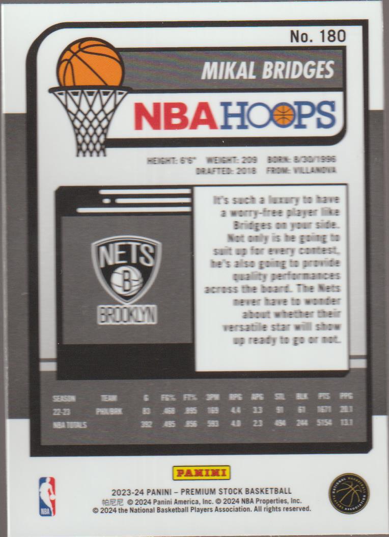 2023-24 Panini NBA Hoops Premium Stock Mikal Bridges #180