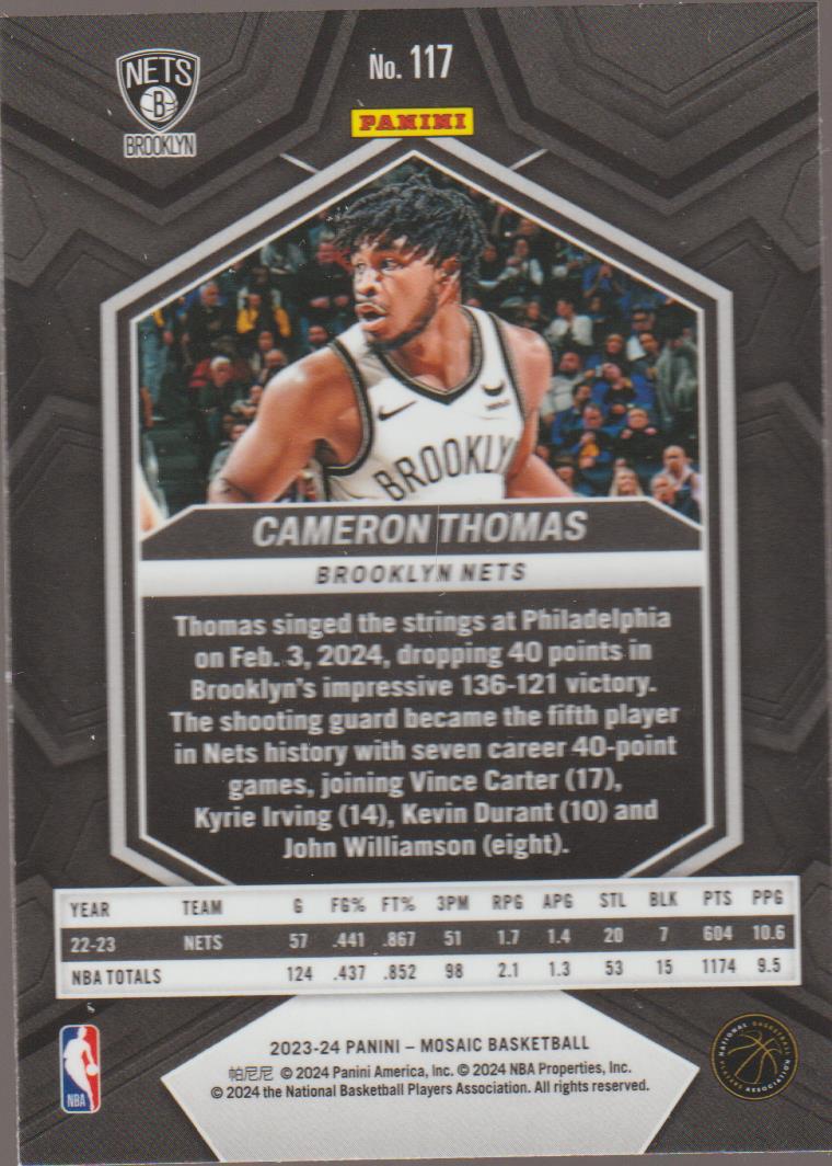 2021-22 Panini Mosaic Basketball Cameron Thomas #255 RC
