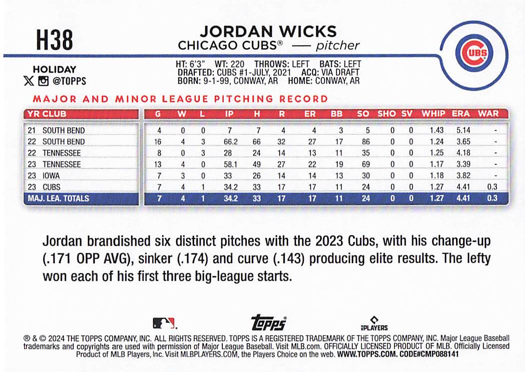 2024 Topps Holiday Jordan Wicks #H38 RC