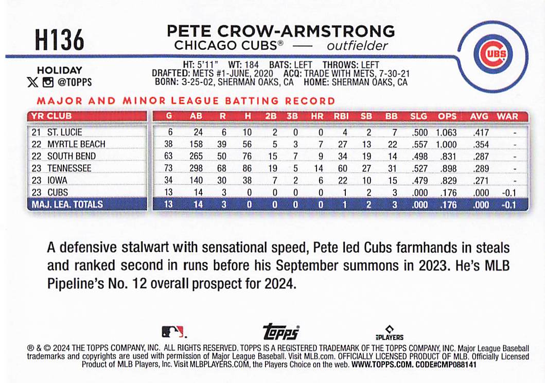 2024 Topps Holiday Pete Crow-Armstrong #H136 RC