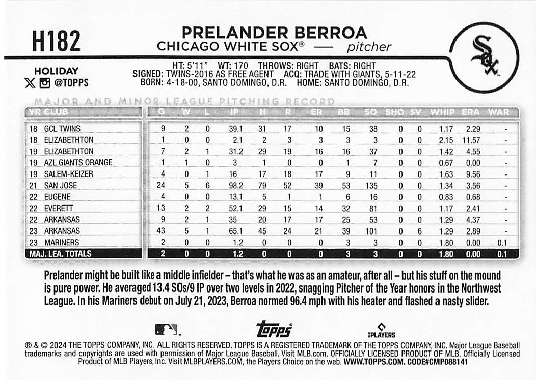 2024 Topps Holiday Prelander Berroa #H182 RC
