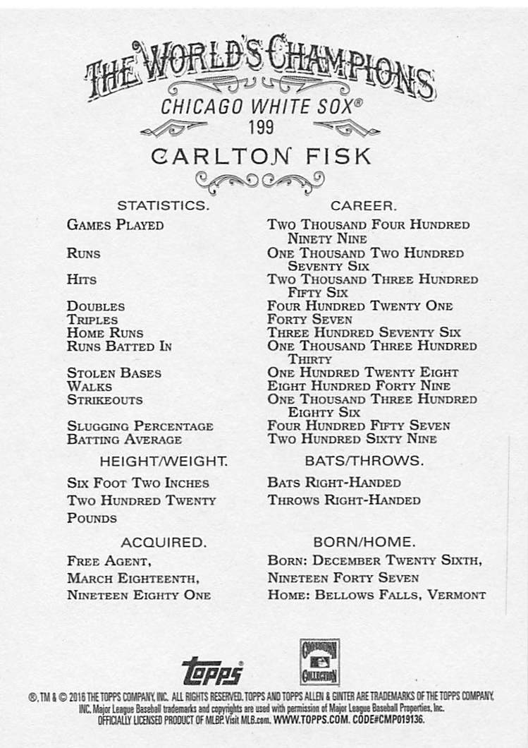 2016 Topps Allen & Ginter Carlton Fisk #199