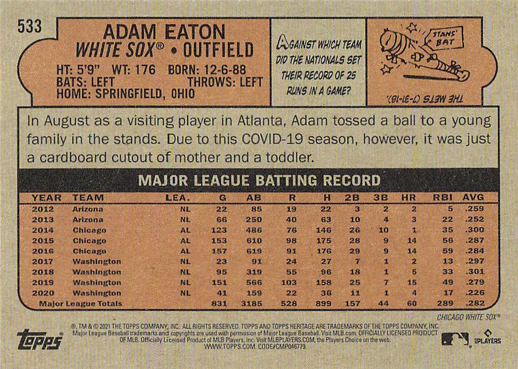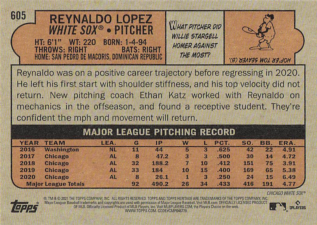 2021 Topps Heritage Baseball Reynaldo Lopez #605