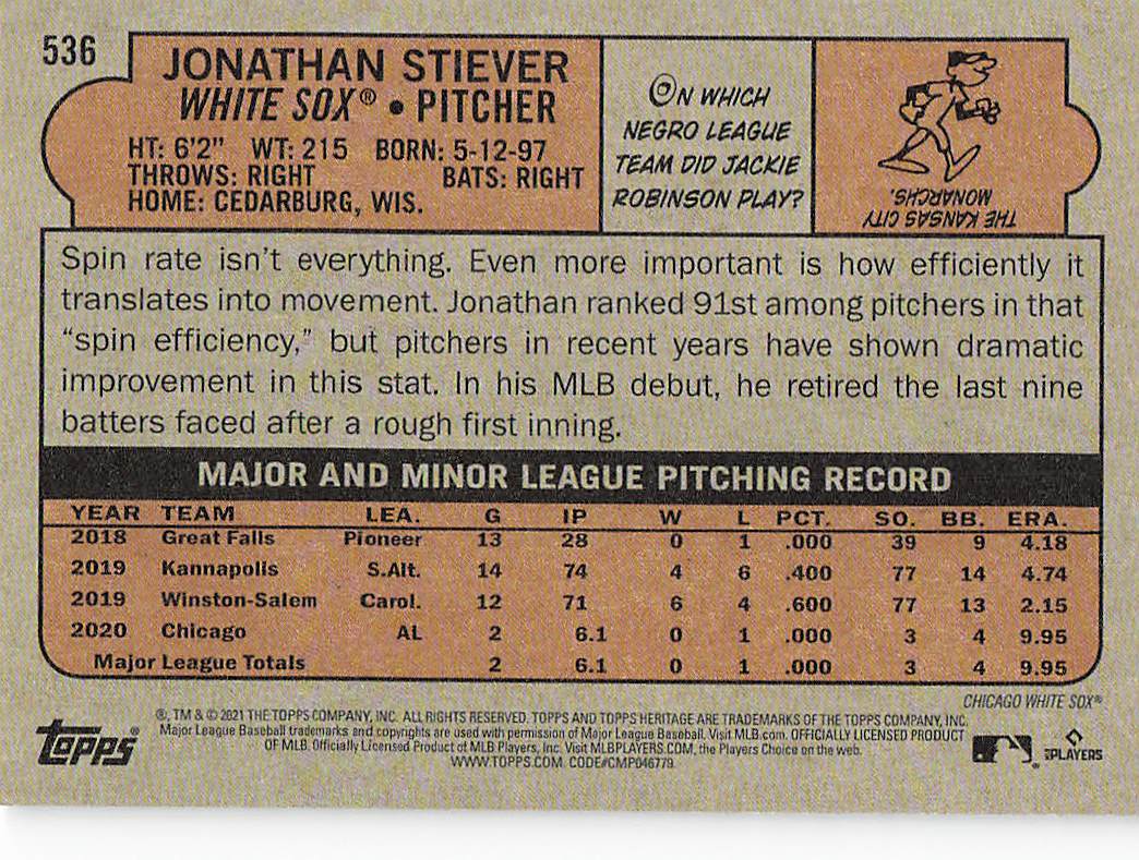 2021 Topps Heritage Baseball Jonathan Stiever #536 RC