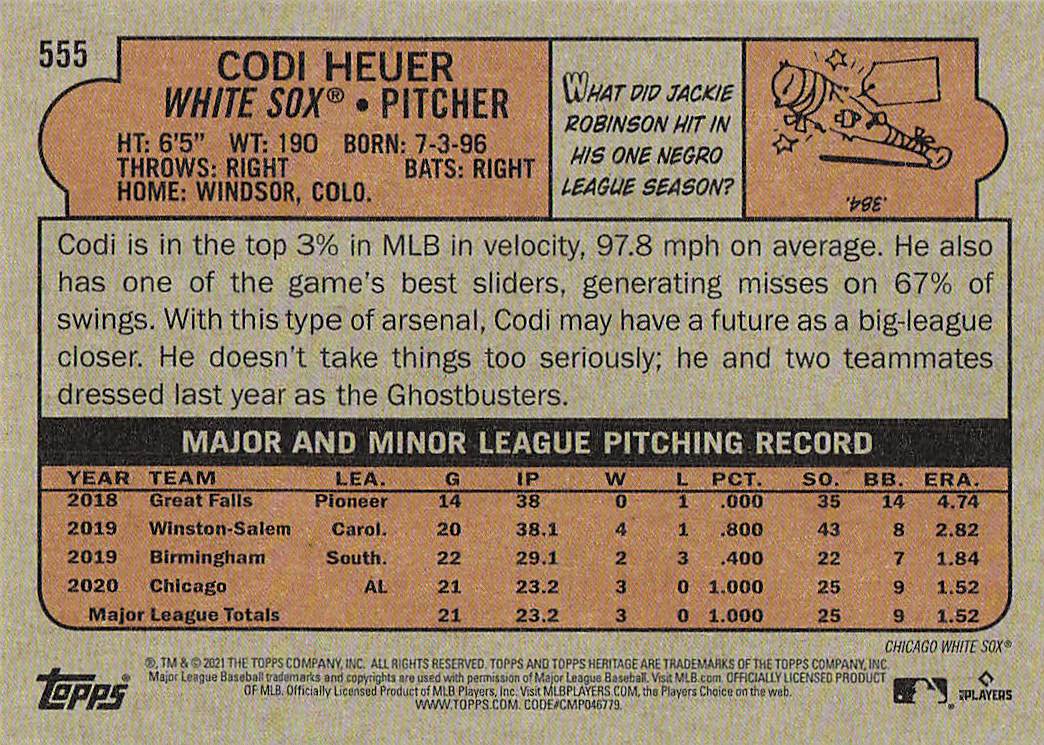 2021 Topps Heritage Baseball Codi Heuer #555 RC