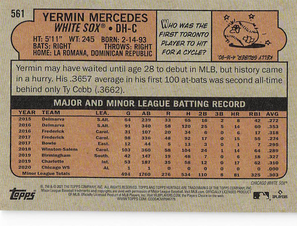 2021 Topps Heritage Baseball Yermin Mercedes #561 RC