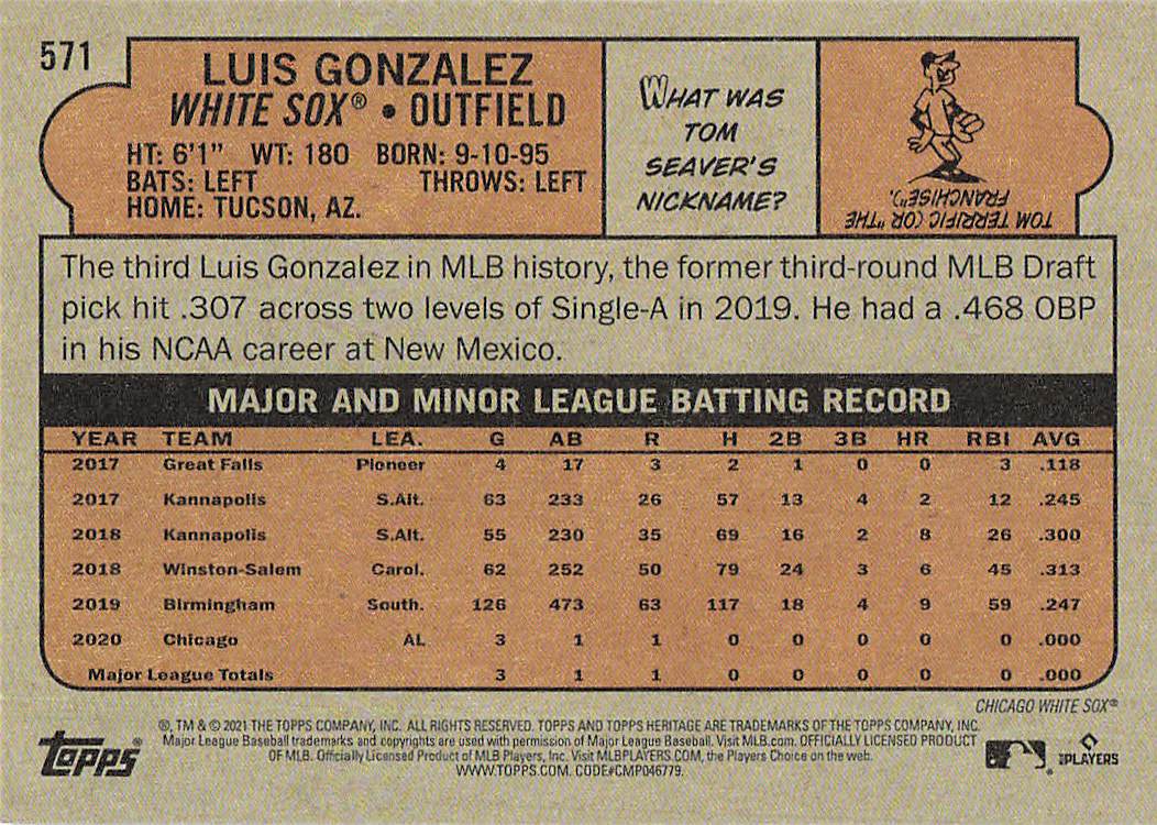 2021 Topps Heritage Baseball Luis Gonzalez #571 RC