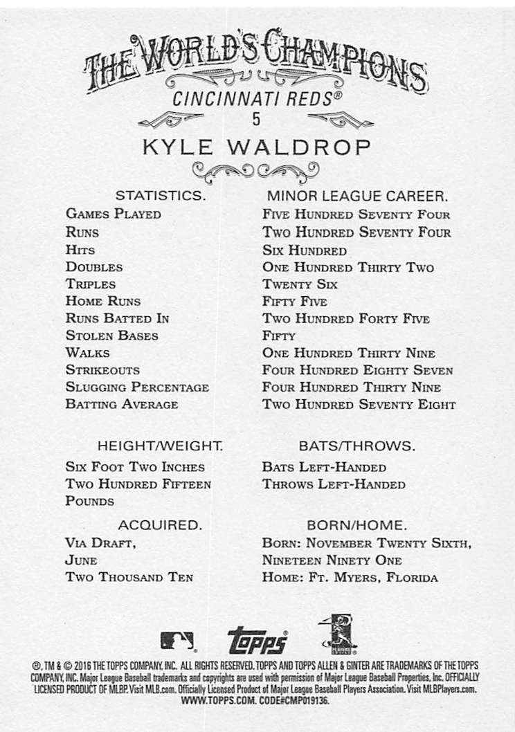 2016 Topps Allen & Ginter Kyle Waldrop #5 RC