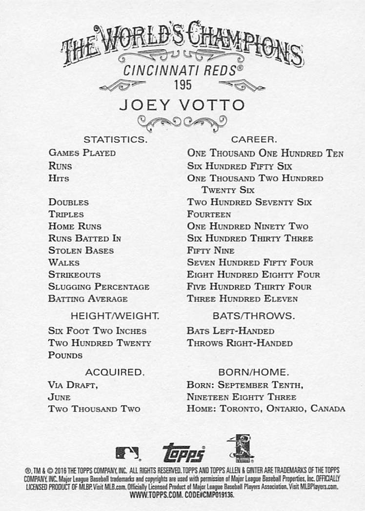 2016 Topps Allen & Ginter Joey Votto #195