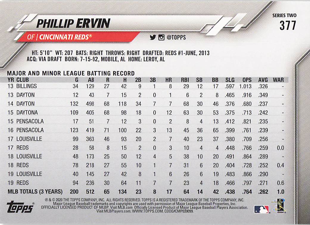 2020 Topps Series 2 Phillip Ervin #377