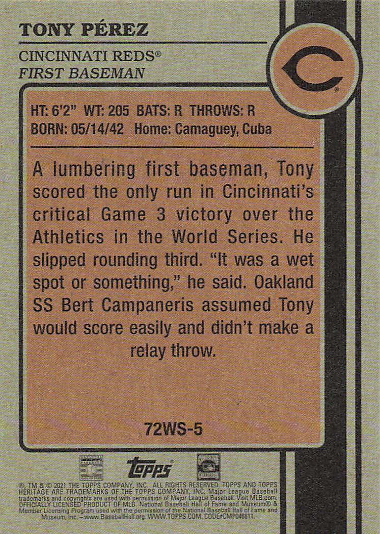 2021 Topps Heritage High Number 1972 World Series Highlights Tony Perez #72WS-5