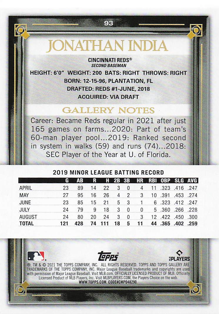 2021 Topps Gallery Jonathan India #93 RC