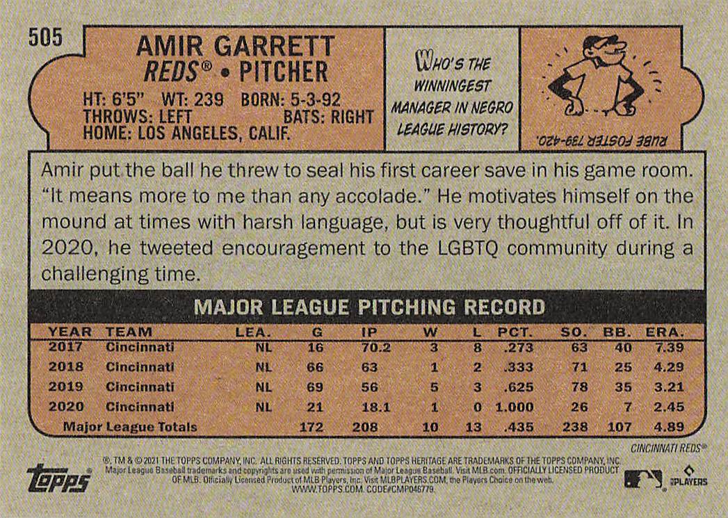 2021 Topps Heritage Baseball Amir Garrett #505