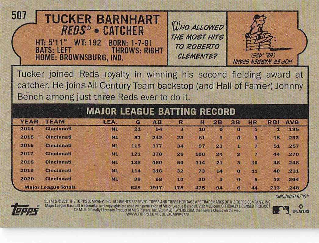 2021 Topps Heritage Baseball Tucker Barnhart #507